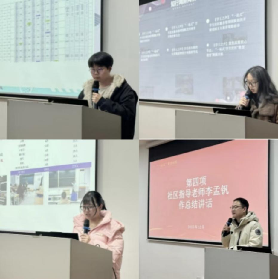 随后,李孟钒回顾了本学期学生社区所开展的特色工作、重点任务及其取得的成效。他对团队在学生社区基础运营与学业帮辅方面所取得的成果给予了肯定,并对工作中暴露的不足之处提出了改进建议。同时,为了更有效地推进下一阶段学生社区的各项工作,他希望团队成员进一步凝聚共识,在新的一年里主动作为、协同发力,做好团队的“动力引擎”,为学生社区服务与管理注入源源不断的内生动力。