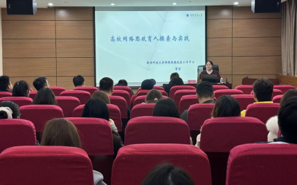 2025年11月6日,由学工部、研工部与宣传部联合举办的“融网聚心·立德树人——新时代高校网络思政育人的探索与实践”专题培训在金花校区学科二号楼报告厅举办。此次培训特邀陕西科技大学网络思想政治工作中心副主任董雪老师作专题报告。培训由学工部副部长余杨铭主持。