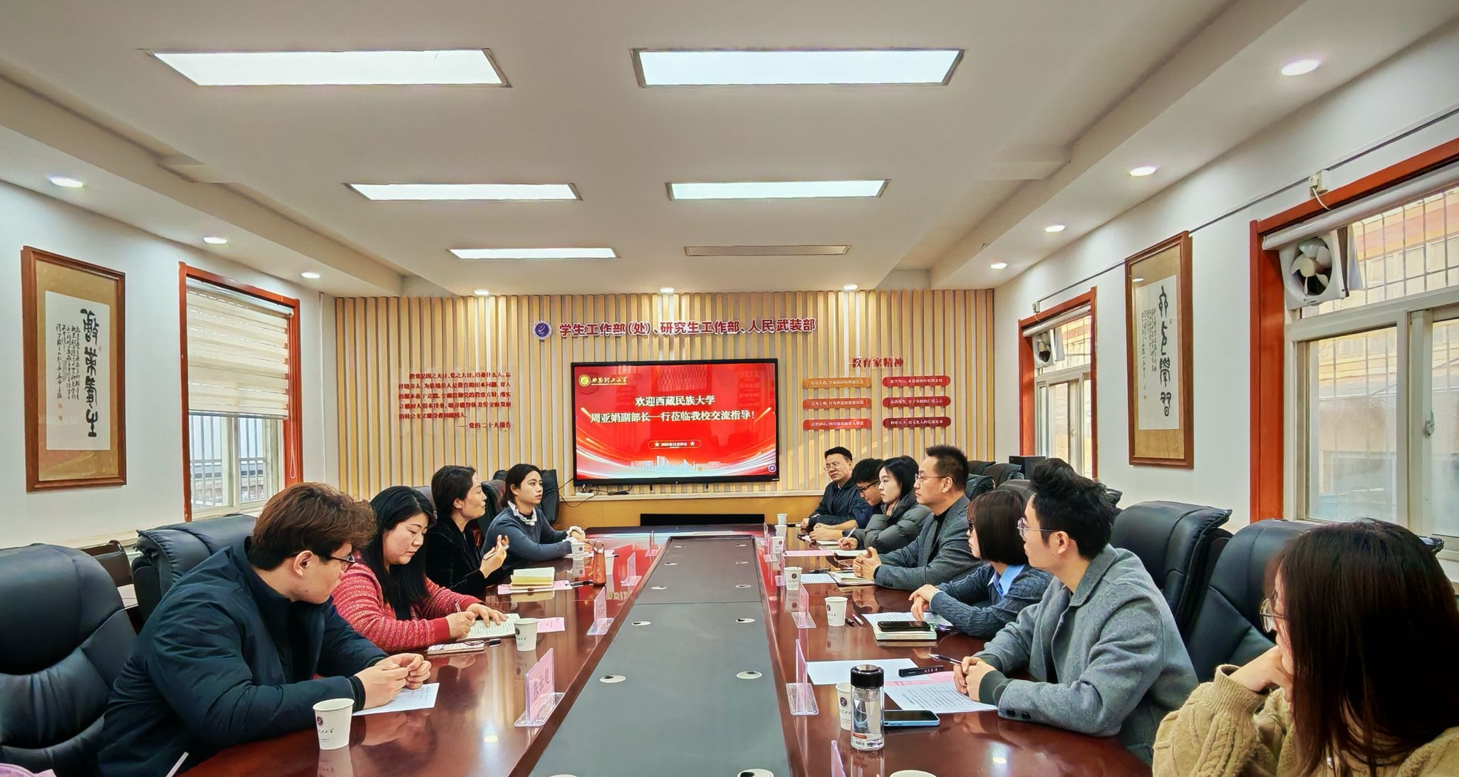 12月26日,西藏民族大学党委宣传部副部长周亚娟一行四人来我校调研交流。座谈会由党委学工部副部长张明主持。